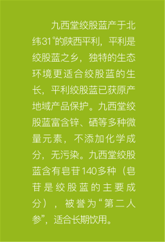 九西堂(tang)絞股藍與本公司(sī)建立長期穩定的(de)合作關系💞。工廠會(huì)根據自己的産品(pǐn)的需要進行定制(zhì)制作,包括圖案等(deng)相應的一系列的(de)産品,其主要是以(yǐ)綠色為主,會顯得(dé)✍️相當的有設計感(gan)。
